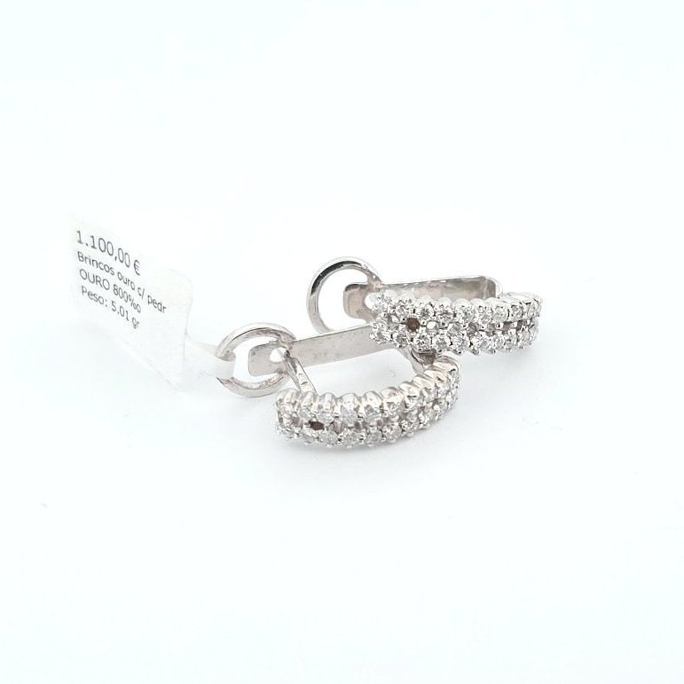 Par de brincos de ouro branco de 19,2 kts com 40 diamantes de 0.02kt. Em muito bom estado, sem sinais de uso.