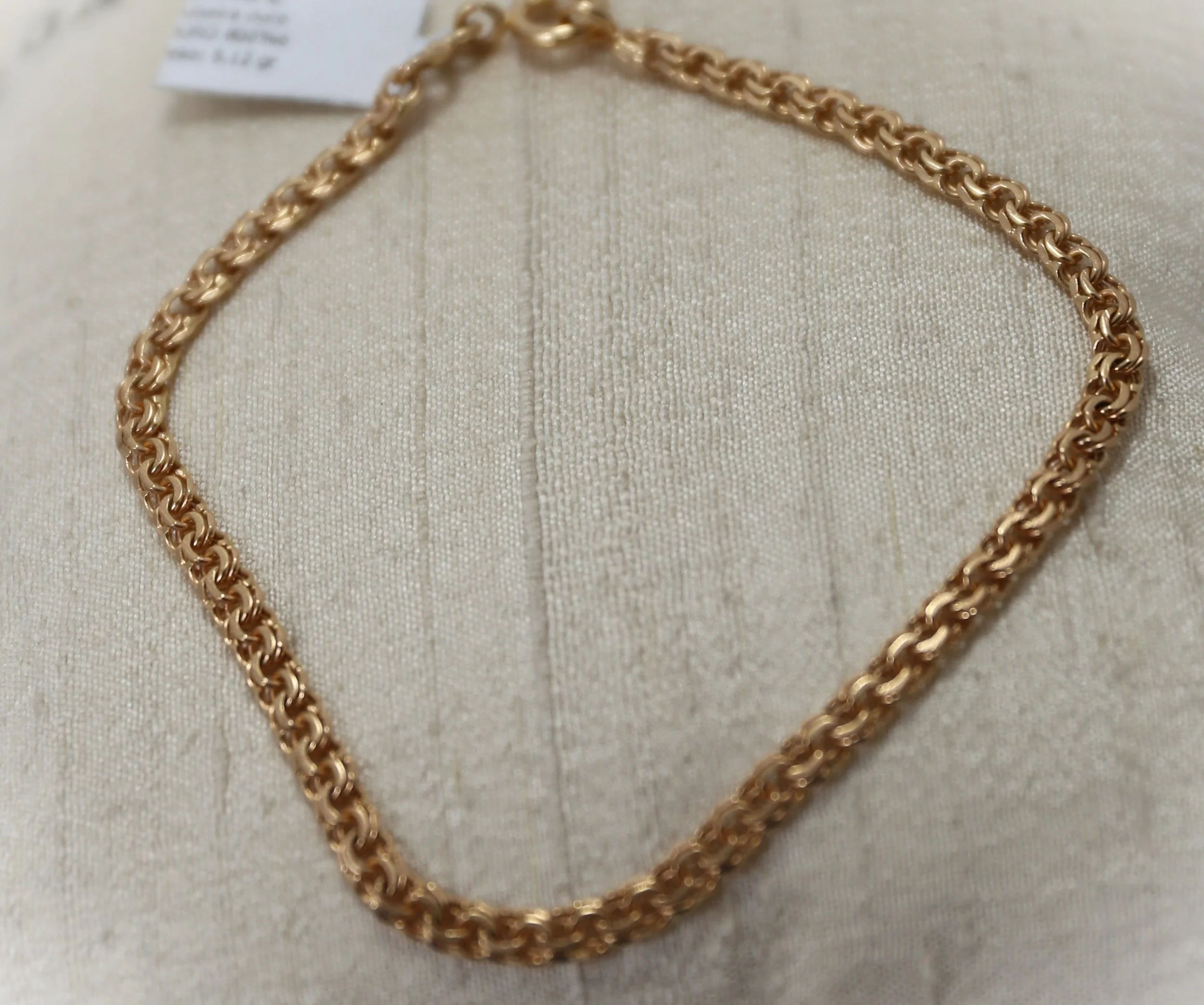 Pulseiras Categorias: Todos Brincos Anéis e Alianças Fios e Colares Pulseiras Pendentes Diversos Todos / Pulseiras Pulseira de ouro com losangos 560,00 € Pulseira de ouro malha de Corda 375,00 € Pulseira de ouro malha de friso 620,00 € Pulseira de Ouro bicolor 970,00 € Pulseira de Ouro Malha Marinheiro 852,00 € Pulseira de Ouro 3+1 com chapa 810,00 €